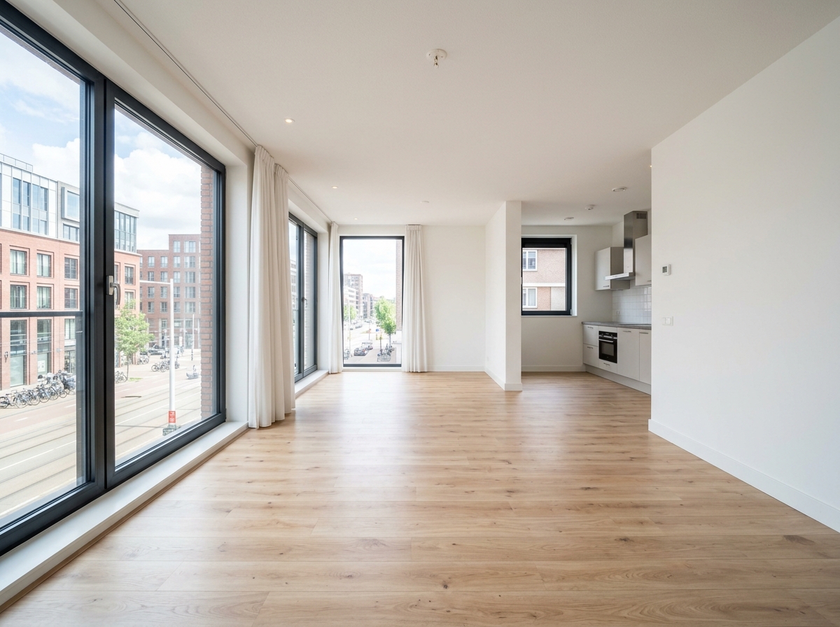 Strakke lijnen, grote ramen en een open plattegrond. Moderne appartementen zijn ideaal voor virtual staging omdat de lege ruimte schreeuwt om meubels.